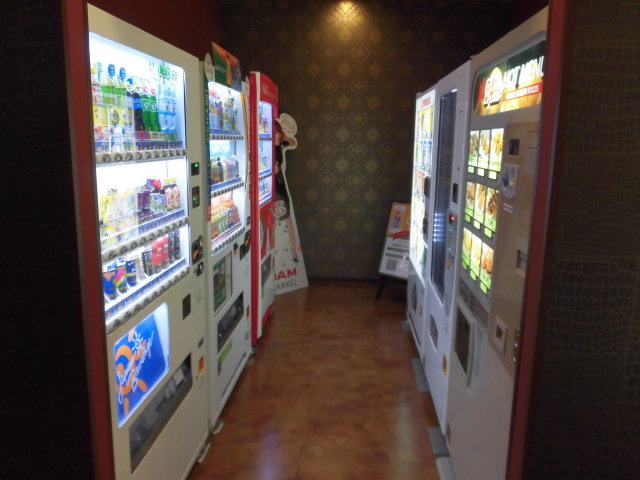 飲食物持ち込み可能なので、各階に自販機コーナーを設けてあります。