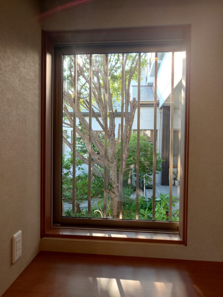 既設の2本のサッシ及び間の壁を取り払い、5連窓の大きいサッシに取り替えました。
