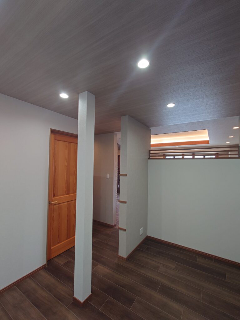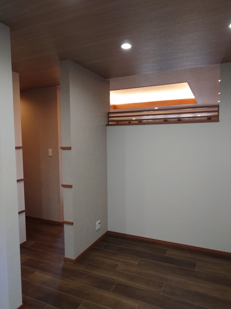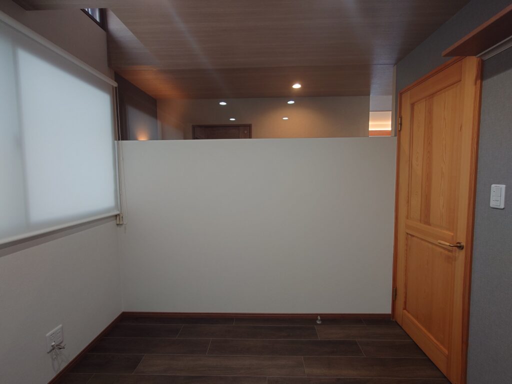 いずれも間仕切り壁上部にガラスを嵌め、解放感を出しました。