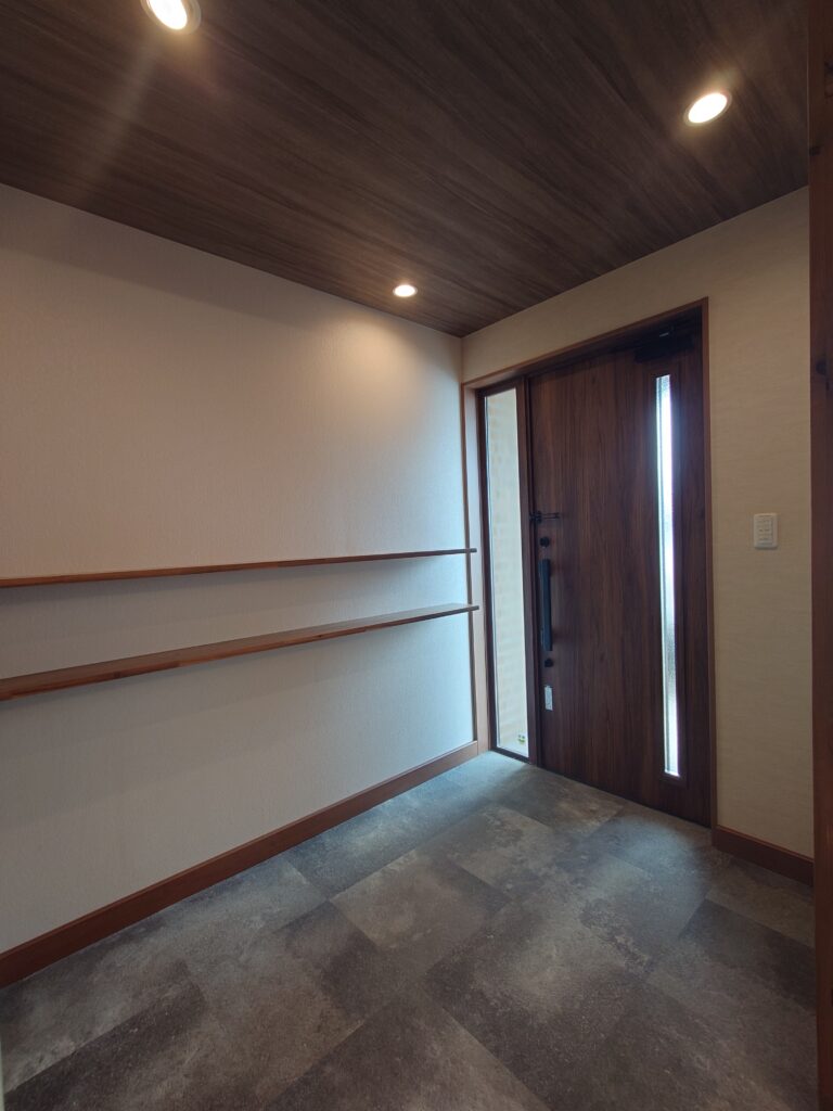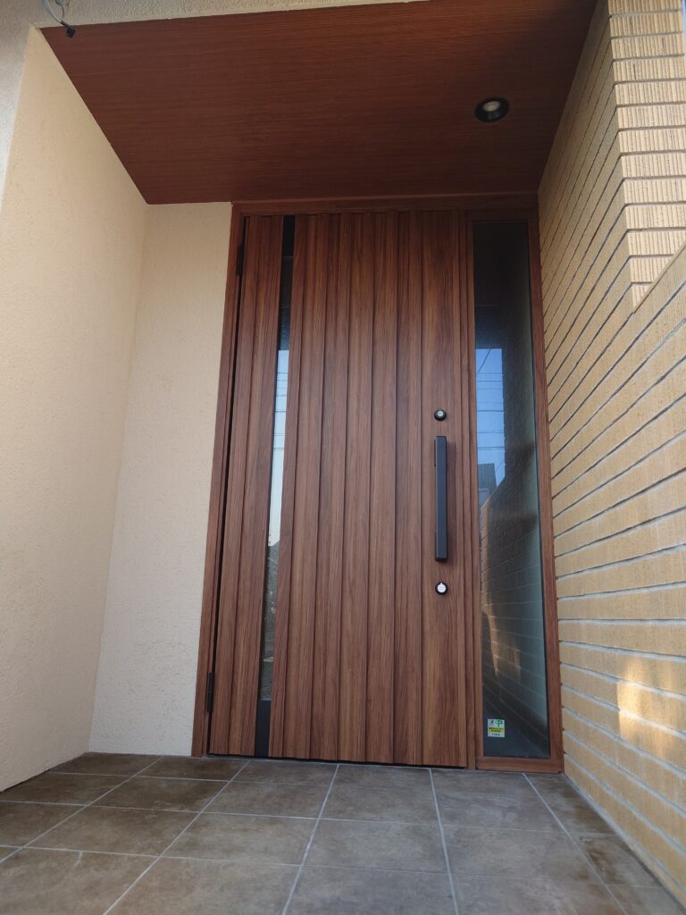 玄関ドアも、アルミのガラス戸から木目調ドアに付け替えました。