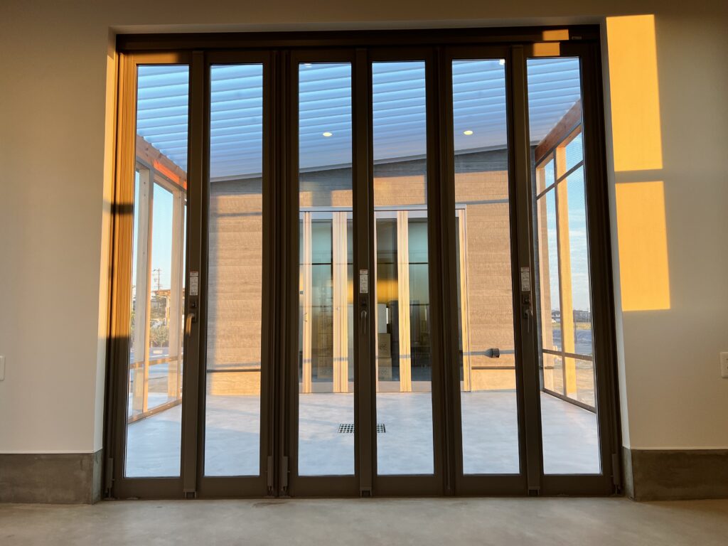 それぞれのブロックは鍵付きアルミ折れ戸で仕切られており、建物一体としての使い勝手と各ブロックの独立性とを兼ね備えています。