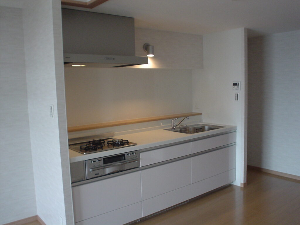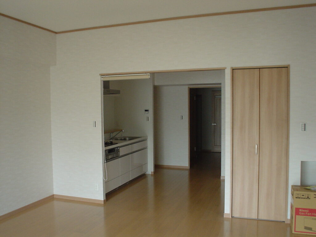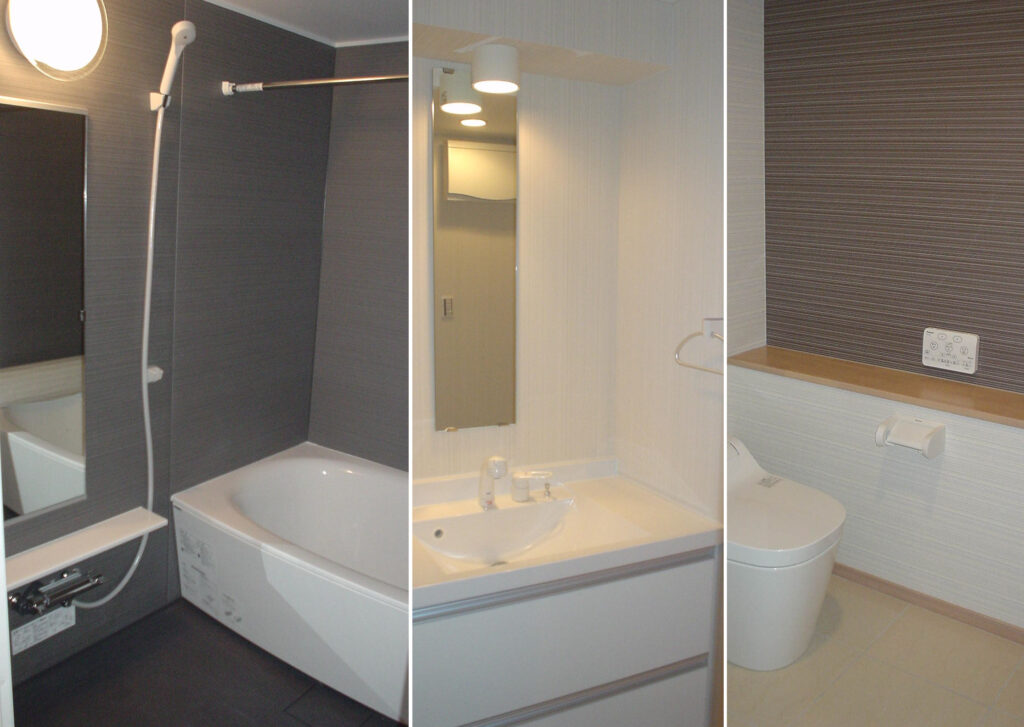 60㎡近い専有面積で、キッチンは単独配置、洗面・バス・トイレも全て別配置で、かなりゆとりのある空間になっています。