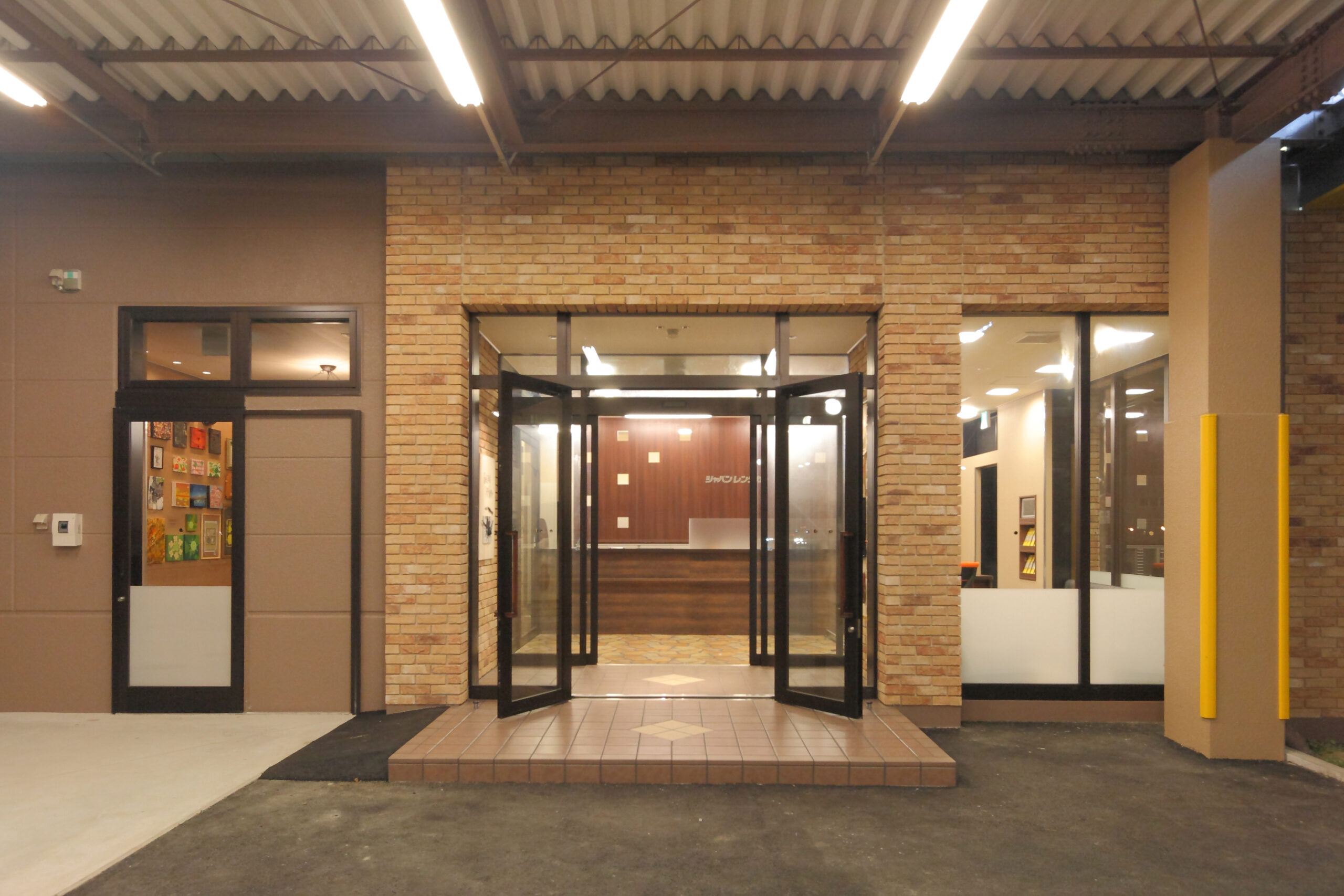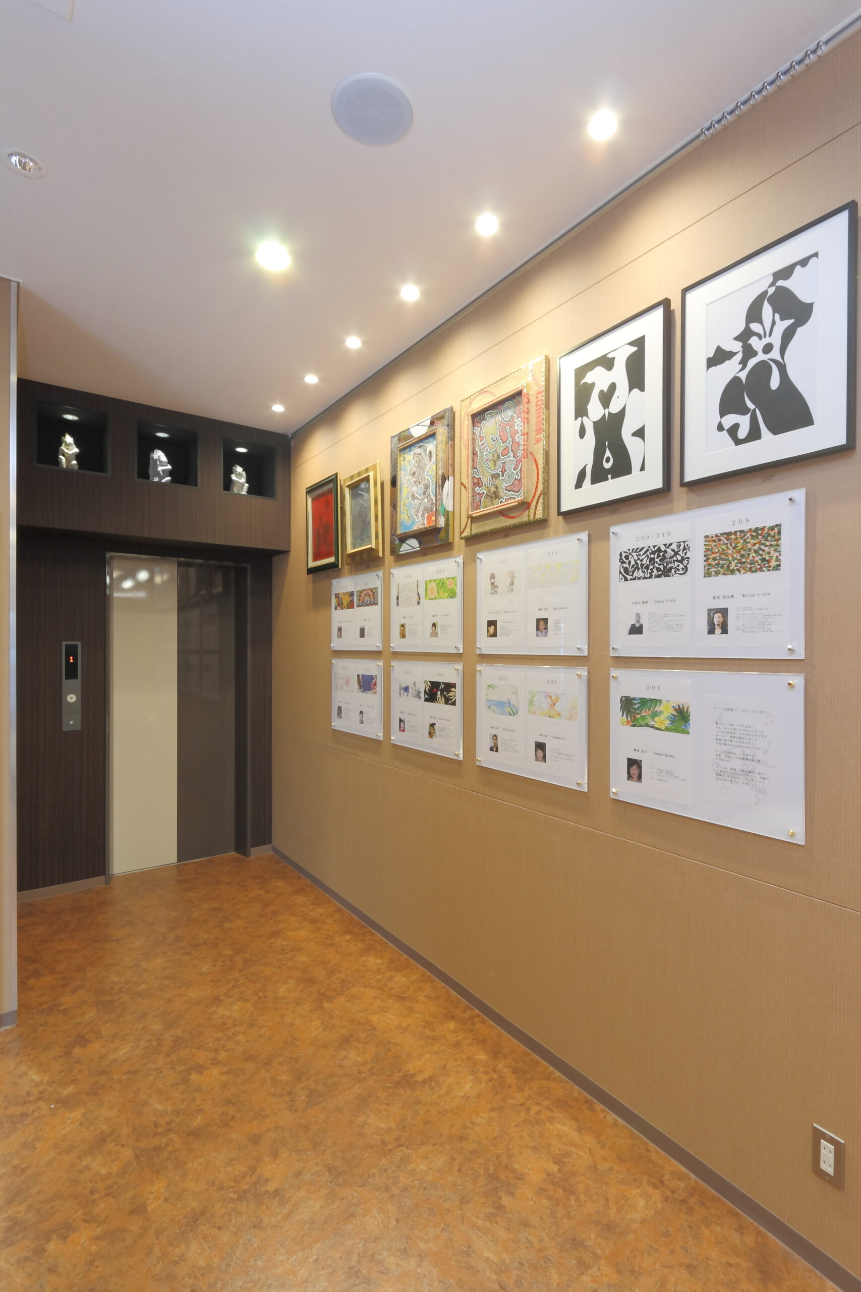 若手画家の方々とコラボレーションし、各部屋の壁に直接絵を描いてもらい、エントランスには作家達の紹介プレートを掲示しました。