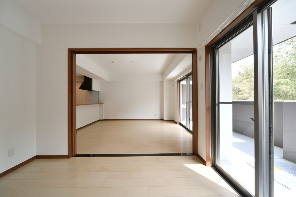 ワンフロア3戸、1戸当たり68㎡強の2LDKファミリータイプで、2LDKとしては大き目な住戸となっています。